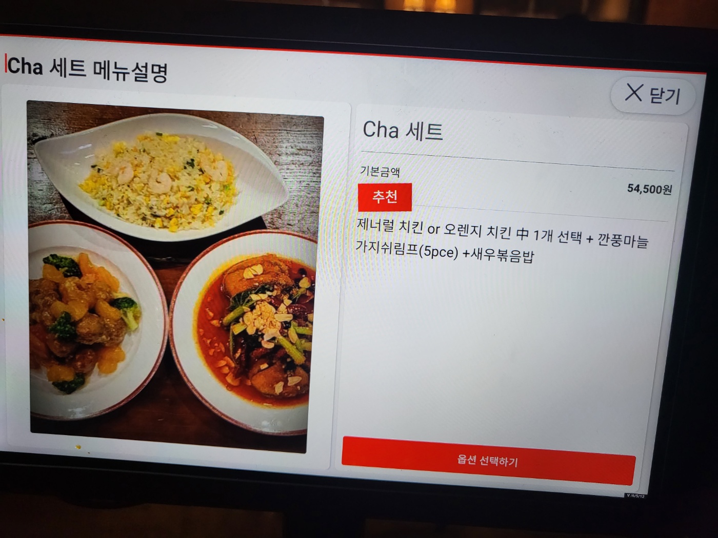 치킨은 오렌지 치킨으로 선택