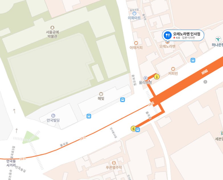 3호선 안국역 1번 출구로 나오면 커피빈이 있다