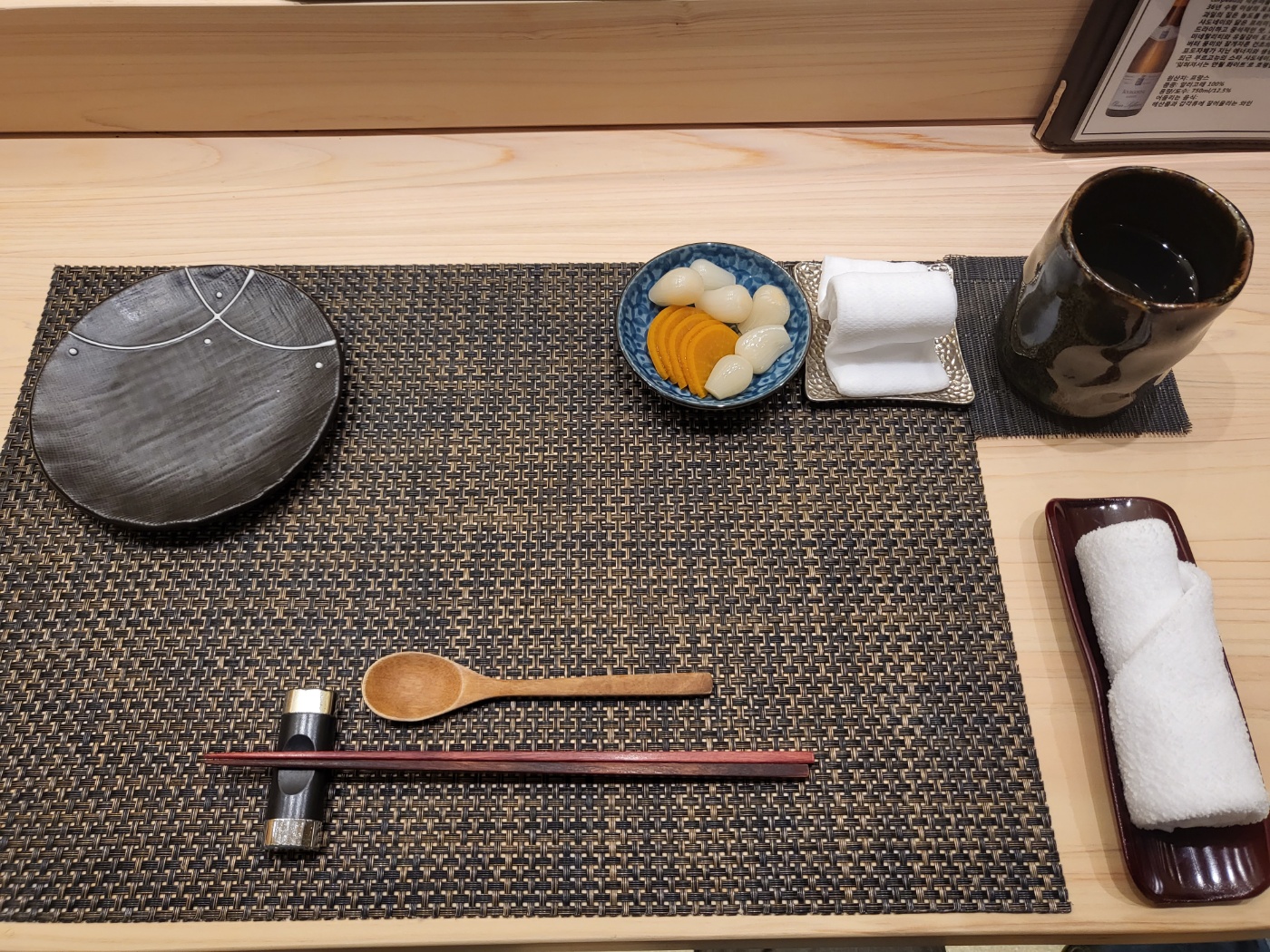 물 잔 옆에 데부끼가 미리 준비돼 있다.