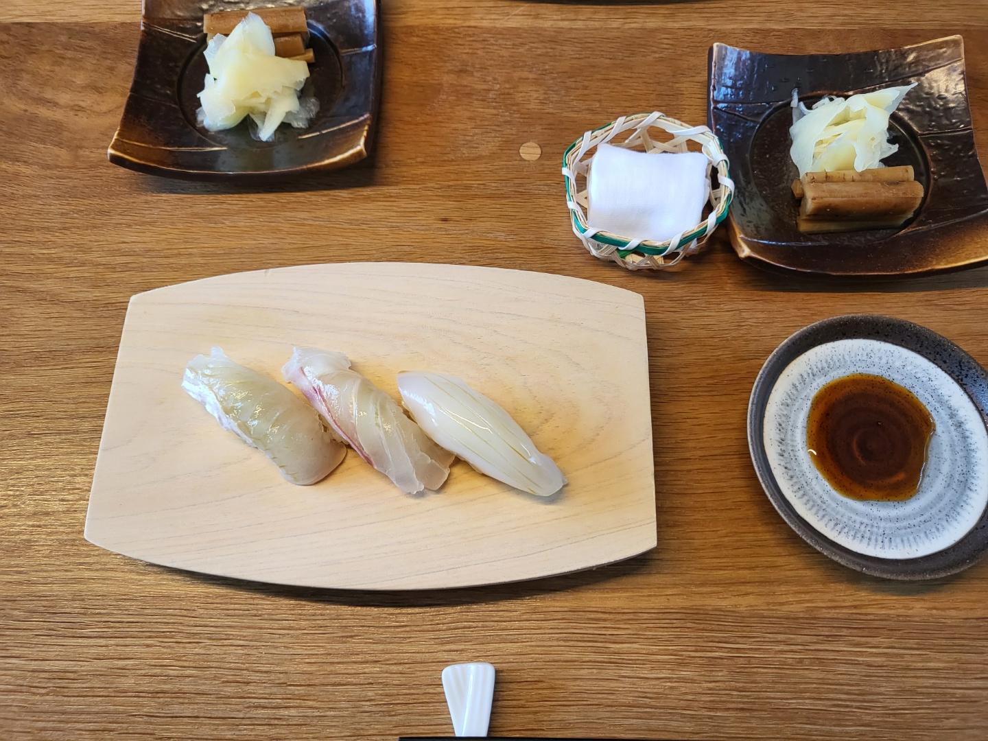 요즘 오마카세가 흔해 졌다. 많은 곳에서 오마카세라는 메뉴를 내놓지만 진정한 오마카세가 아닌 모듬 초밥인 경우도 있다. 오마카세 그랜드 슬램은 다음 4곳을 다녀와야 한다고 미식가들이 이야기 한다. 가격도 가격이지만 예약도 어렵고 맛도 각기 다른 미묘한 차이가 있다고 한다. 아직 한곳만 다녀온 사람으로 모든 맛을 비교하기에는 능력 밖의 일이다. 네곳을 줄여서 ‘모박송이’ 라고 부른다 모리타(아리아께) / 박경재(스시코지마) / 송웅식(키즈나) / 이진욱(스시인) 좋은 오마카세 식당에서는 전문용어를 쓰곤한다. 일본어를 맹목적으로 사용하는 것은 좋지 않지만 이정도 알고가면 무슨 이야기 인지 알고, 주문하기도 편하다. 데부끼(스시용 물수건) 쯔께모노(절임류 채소, 무, 피클, 우엉, 락교 등) 네타(초밥위 해산..